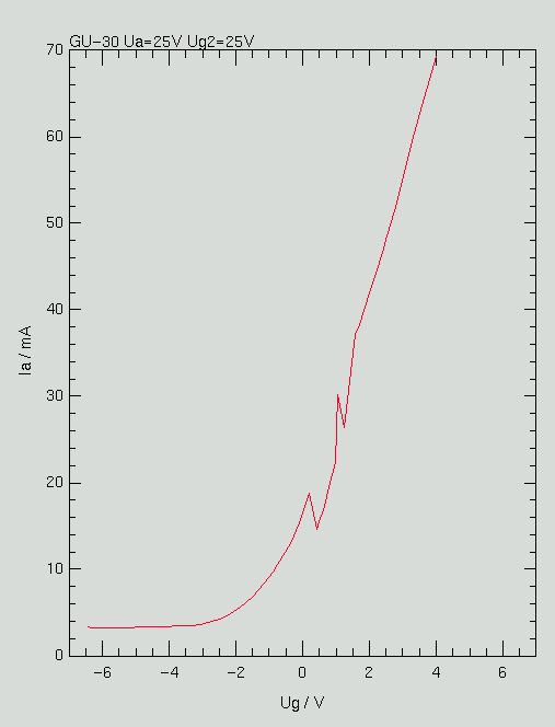 > Ganz einfach, durch eine gnadenlose Überlastung.Das steckt die GI 30 > locker weg,da glühen die Anodenbleche nicht einmal(Anodenverlustleistung > 40-50 Watt pro Röhre). Hier gibt es ein Bild von dieser beeindruckenden Roehre: http://www.afrudolph.de/kh_gi30/kh_gi30_dateien/kh_ar7.jpg (das ugly-Gehaeuse unter der Roehre ignorieren wir mal lieber) Guenther hat schon recht. Diese Roehre ist wirklich erstaunlich und rein optisch wie geschaffen fuer einen kultig ausschauenden Kopfhoererverstaerker. Bloss muss man vielleicht einen Signalprozessor vorschalten um die bananenfoermige Kennlinie bei Kleinspannung geradezubiegen. <grummel> Olaf