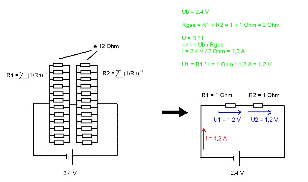 Hallo, ich weiß, das Thema gehört nicht ganz hier her, ich hoffe ihr helft mir trotzdem. Irgendwie kommt bei mir grad Theorie und Praxis durcheinander bzw. hab ich bei der Theorie wohl nen Fehler drin. Die Theorie könnt ihr dem Anhang entnehmen. Praxis: Wenn ich aber die Widerstände an ein Netzgerät hänge, an dem 2,4V eingestellt sind, fällt die Betriebsspannung auf 1,2 V und an den Widerständen sind jeweils 0,6V. Woher kommt dieses Verhalten? Oder muss ich einfach Ub erst einstellen, wenn die Schaltung dran hängt. Viele Grüße