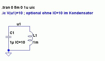 @ s0mbl (Gast) >habe heute versucht einen idealen Schwingkreis, bestehend aus Spule und >Kondensator nachzubauen. (ohne widerstand) Leider habe ich keine Idee, >wie ich die Anfangsladung im Kondensator simulieren kann. Mit dem Parameter IC (Initial Condition), das ist beim Kondensator die Spannung. >PSpice bringt mir zudem einen fehler und meint, dass 2 nodes "floaten" Logisch, weil ein Pin in der Luft hängt. Jeder Punkt braucht in PSpice einen Gleichstrompfad gegen Masse. Da reicht auch 1G Ohm. MFG Falk