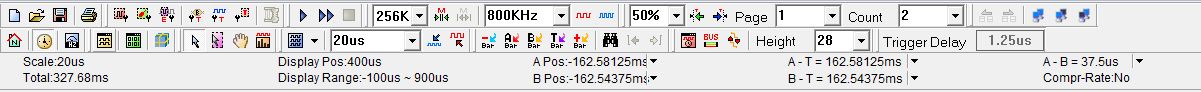 Hallo da. Ich habe eine Zeroplus Lap-C 16128. Anhängend seht Ihr die Einstellungen die ich zum Abhören einer UART mit 230400 Baud gemacht habe. Warum bekomme ich immer nur einen kleinen Teil um den trigger herum aufgelöst? Wenn ich was kleines sende, bekomme ich nur ca. 800us aufgezeichnet, alles was dahinter noch so geschieht wird ignoriert bzw. nicht dargestellt :-( Irgendetwas verstehe ich hier falsch. Was auch komisch ist - links steht Total 327ms; Der Trigger sitzt aber bei 162ms wie kommt das? Wenn ich auf den "Play" Button drücke, wartet das Programm ja auf eine Flanke, wenn diese dann detektiert wurde, fängt die aufzeichnung an. Warum ist dann der Trigger bei 162ms? Bitte helft mir! Björn ps. Das Programm ist sowas von durcheinander programmiert - unfassbar :(