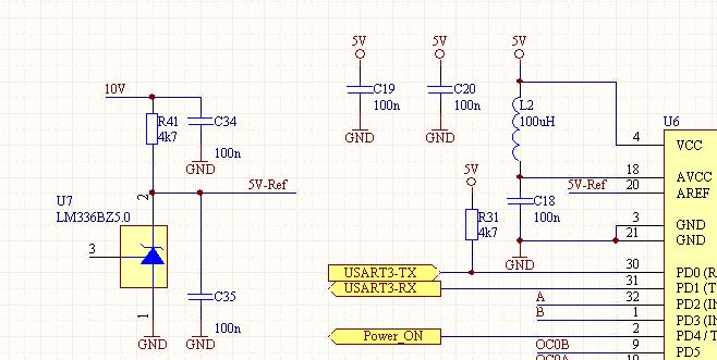 Ist schon irgendwie zum Heulen. Da schustert man sich eine Schaltung mit 4 PCBs, 2 verschiedenen MCU's und und und zusammmen, alles laeuft auf Anhieb (na ja, fast auf Anhieb) .... und verzweifelt an einer Referenz-Diode. Die Spannung welche mir die Diode abgiebt liegt irgendwo zwischen 5,18V und 5,09V. Je nach Lust und Laune. Ein paar Erwaehnenswertes: - Die 10V werden vom Atmega erzeugt. Aber diese Spannung ist stabil. - Wenn ich mit dieser Spannung spiele, verschiebt sich auch die Ref-Spannung der Diode - Anfaenglich hatte ich ADMUX falsch initialisiert: REFS1:0 REFS0:1, also "AVcc with external capacitor at AREF pin" - Yep, die Diode wurde ausgetauscht und auf Defekt getestet. Jetzt habe ich, da meine 5V Versorgung ziemlich stabil ist, die Diode und den Widerstand entfernt und verwende AVcc als Referenz. Laeuft auch alles so wie es soll, aber es wurmt mich schon, die Frage, was ich falsch gemacht haben könnte. Irgend jemand 'ne Idee? MfG aus Istanbul