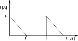 Hallo, ich dimensioniere gerade einen Sperrwandler und muß nun wissen, wie groß der Effektivwert des Eingangsstromes I1eff(zur Verlustleistungsberechnung) ist. Habe eine Formel für ein Tastverhältnis von a=0,5 gefunden. Nun will ich aber den I1eff für a=0,45 berechnen. Gut werden einige sagen über den Daumen stimmts schon, aber bewege mich an der Grenze und will es genau wissen. Nach langer Zeit :-) hab ich nun mal wieder integriert und bin auf ein Ergebniss gekommen. Toll, was. Also I1 = 7.02A t1=9us und T=20us Laut meiner Rechnung komme ich auf ein I1eff von 2,354A. Frage: Stimmt das so? Peer