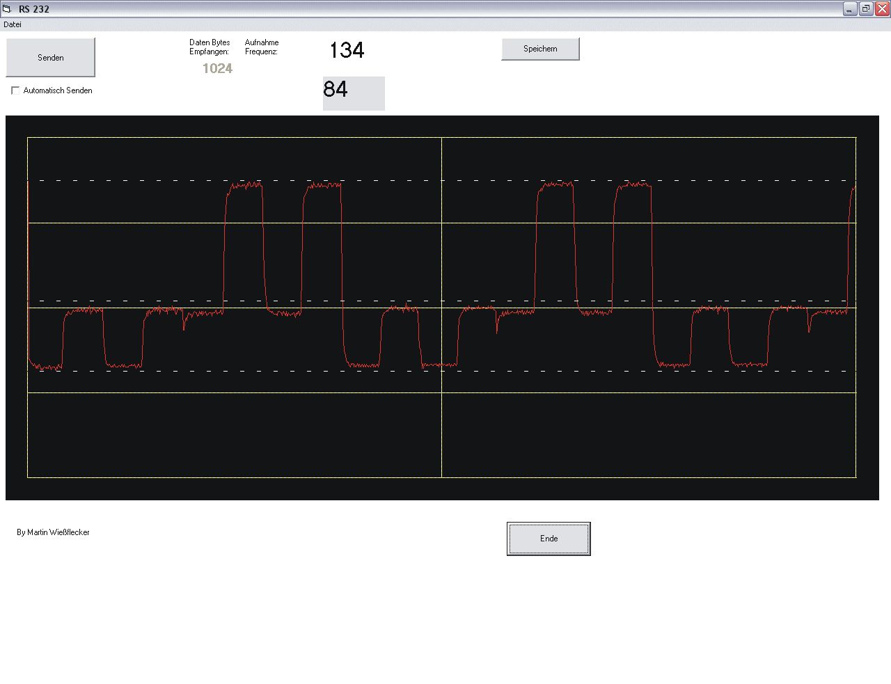 Ach ja nochwas Wegen der Software. Ich habe nur ein kleines Programm in Visual Basic verwendet, welches die Daten über die serielle Schnittstelle bekommt, natürlich viel zu langsam selbst mit 115200 Baud. Da müsste man schon USB verwenden, hab auch schon die PICs mit integriertem USB bei mir liegen (bin PIC Fan) nur leider hatte ich noch keine Zeit mich damit zu beschäftigen. C++ zum programmieren am PC ist auch kein Problem, nur die grafische Oberfläche für eine anständige Darstellung der Signale, die macht mir sorgen, damit kenn ich mich nämlich garnet aus... Vorallem ist mir wichtig, dass bei einer live Darstellung, das Bild nicht flakert, also bei schwarzem Hintergrund beim Aktualisieren kurz weiß wird... vielleicht könnte ja jemand diesen Part übernehmen ;-) Mfg Martin Wiessflecker ---------------------------------- http://www.sbox.tugraz.at/home/m/martinw