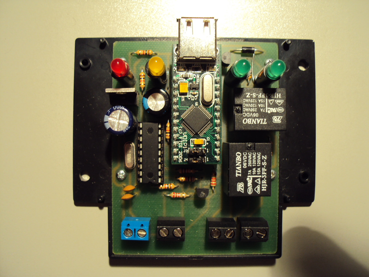 Funktionen: 1. Alarm ( Anruf auf zwei vorprogrammirten Telefonnummern Namens "Alarmeins" und "Alarmzwei" ) 2. Abhörfunktion ( wenn eingegangener Anruf von "Alarmeins" ist ) 2. SteuernFunktion ( zwei Relais kann mann steuern mit SMS "Relaiseinsein", "Relaiseinsaus", "Relaiszweiein" und "Relaiszweiaus" ) LEDs: 1. Rot 5 Volt 2. Gelb Programmablauf 3 und 4 - entsprechend Relaiseins-und-zwei ein-und-aus Klemmen: 1. 5 Volt 2. Uberwachungskontur ( normaler Schließer ) 3 und 4 - entsprechend Relaisein-und-zwei