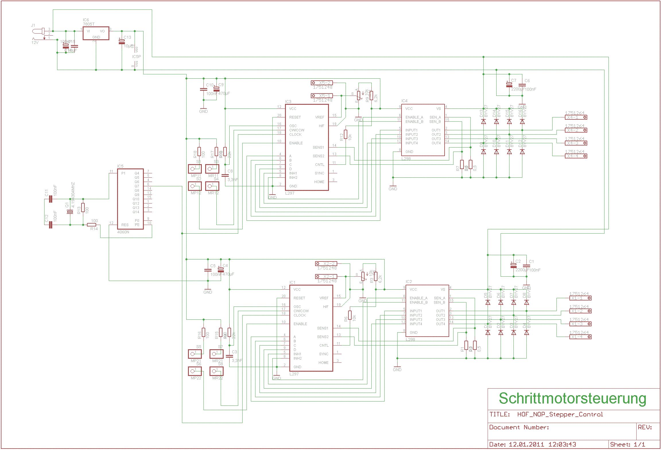 Hallo an alle, momentan beschäftige ich mich in der Schule mit einem Projekt, welches die ansteuerung eines Schrittmotors realisieren soll. Ich habe eine Schaltung, mit der ein Schrittmotor angesteuert werden kann. Da ich eine gewisse Frequenz für diesen Motor brauche habe ich mich durch das Netz gewühlt und mich jetzt entschieden mit dem NE555 zu arbeiten. Der Motor wird neben einer Carerabahn stehen, wo er eine Webcam anfangs horizontal bewegen soll. Später möchte ich einen zweiten Motor verwenden, um die Cam vertikal zu bewegen. Daher dachte ich mir, dass die Frequenz nicht all zu hoch sein sollte. Anfangen wollte ich mit etwa 20Hz. Ich habe mich informiert, wie die Bauteile für die Schaltung des NE555 dimensioniert werden müssen und bin zu folgendem Ergebnis gekommen: f=1,44/((R1+2R2)*C) R1= 1k f=20 Hz C=100 nF Ich habe alles nach R2 umgestellt um komme auf ein Ergebnis von sagenhaften 359,5 kOhm. Nun meine Frage(n): Ist erstens meine Berechnung richtig und würde die Schaltung (siehe Anhang) mit der Dimensionierung noch laufen. Mir scheint der Widerstand R2 sehr hoch. Ich muss noch anhängen, da ich nicht viel Ahnung von diesem Thema habe. Ich arbeite mich grade erst hinein. Also würde ich mich freuen, wenn eure Antworten so einfach wie nur möglich zu verstehen sind. Mfg Patrick