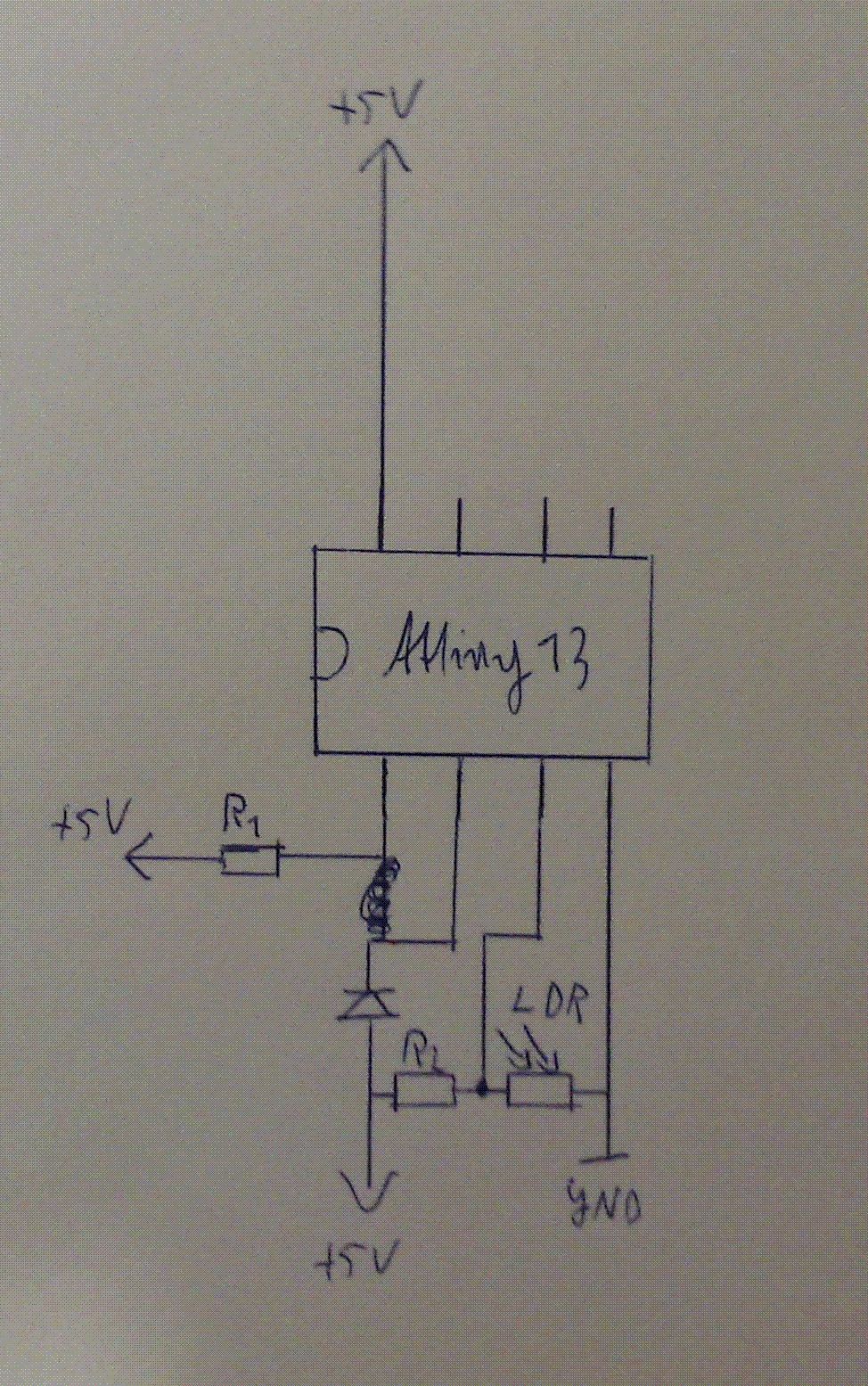 Spannungsteiler aus einem Widerstand 100kohm und einem LDR.