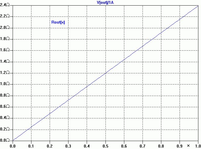 Hatte schon geschrieben, dass der Ausgangswiderstand zwischen 0Ohm und 2,4Ohm schwankt, wenn amn den Opamp als ideal annimmt und diesem Ideal ist der sehr nahe. x ist die Potistellung