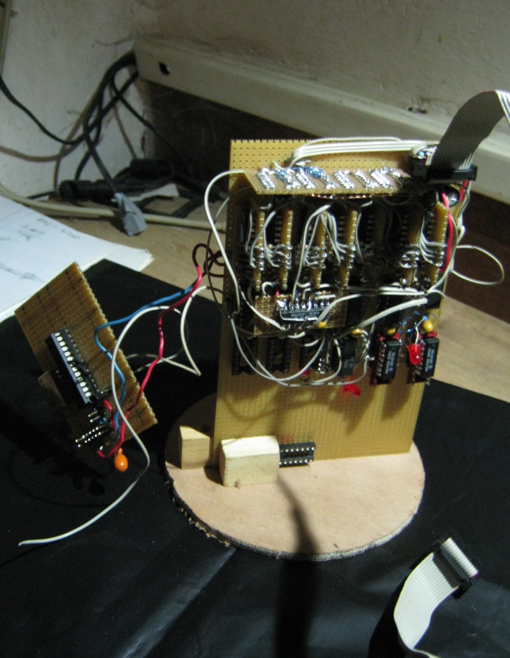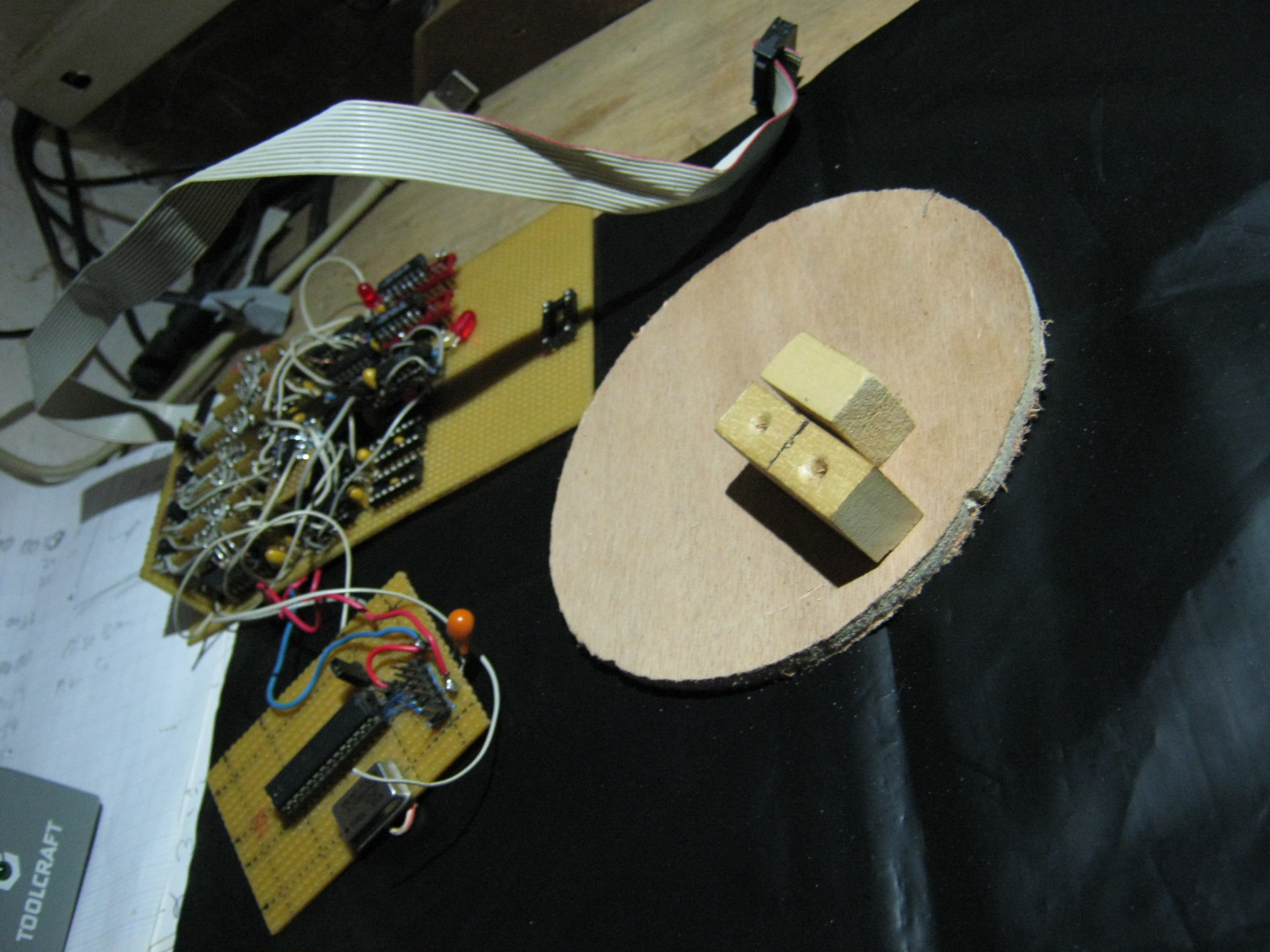 Hallo, habt ihr nicht auch manchmal das Problem , dass der Tisch zu klein wird ? Ich persönlich leide manchmal darunter, dass eine Teilschaltung fast fertig , jedoch nicht fertig genug für ein Gehäuse ist. An der zweiten platine wird noch gearbeitet und alles liegt auf dem Tisch herum und riskiert in einen Lötzinnfleck gezogen zu werden oder auf einem abgeschnittenen Widerstandsbein den Kurzschluss zu erleiden. Anbei eine vertikale Lösung des probs. Endlich weiss ich, was ich mit den Holzresten machen kann. Gruss Klaus