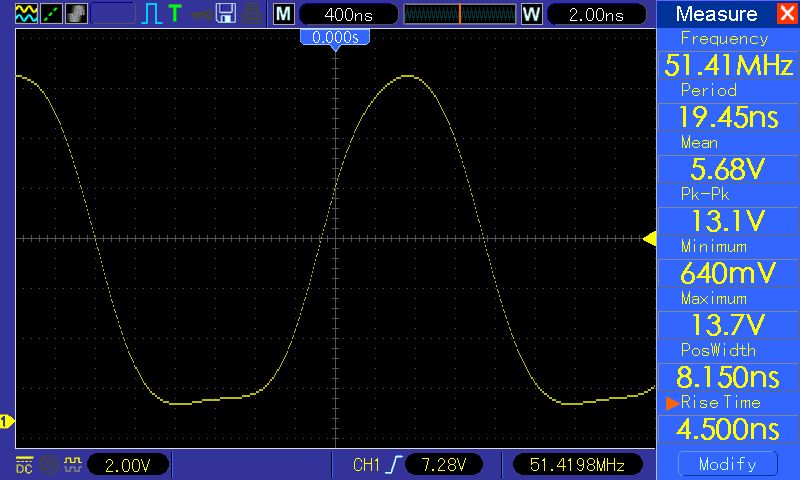 leider habe hier nur den FG210, anstiegzeit daher nicht so toll. Sehe aber kein unterscheid zwischen direkt, direkt + 50Ohm terminiert, über pasive HF probe oder dem analog 400MHz oszi.