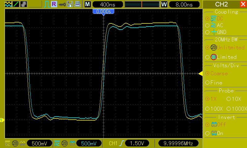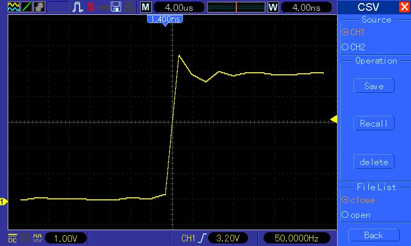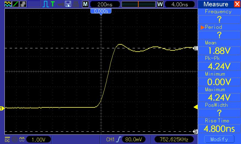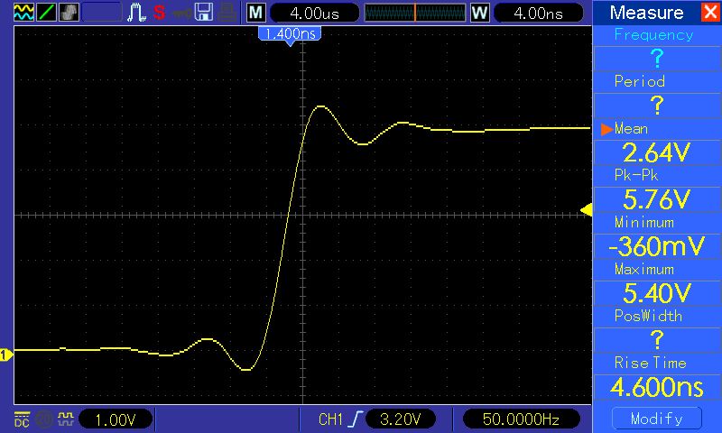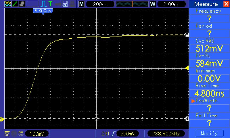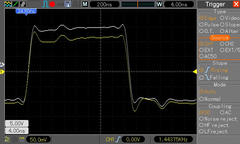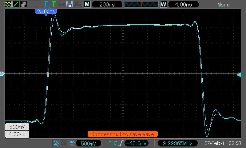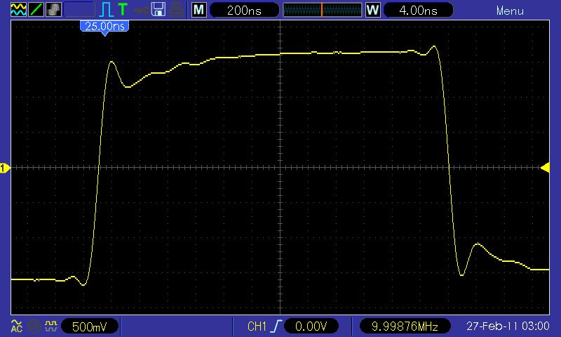 Es ist so, wie Thomas sagt. Bei Puls gehts bis 50MHz und die Anstiegszeit ist mit 3ns im Handbuch angegeben. Und das x10 hatte ich nicht umgestellt, schließlich ging es nicht um absolute Werte sondern um einen Vergleich. Gruß Dieter