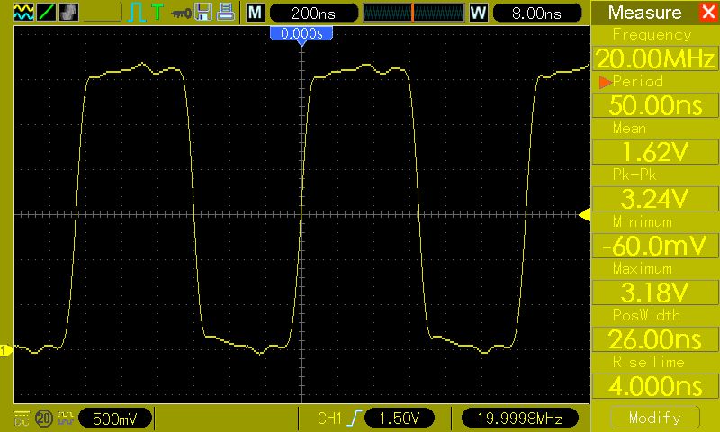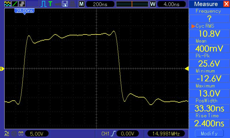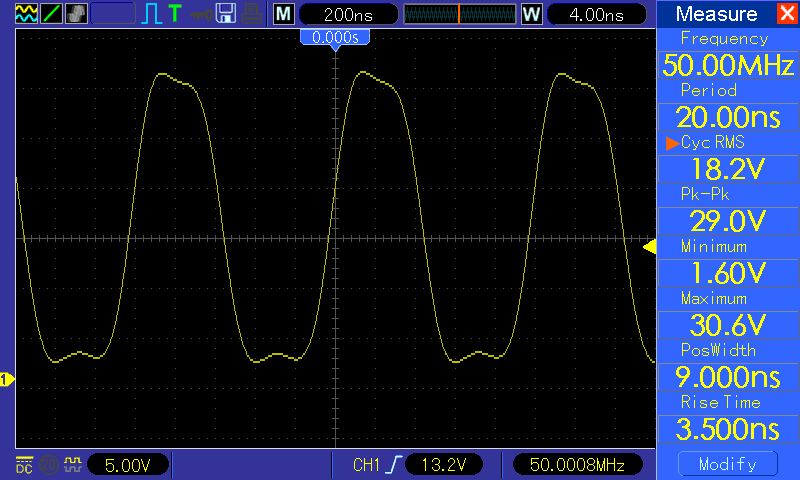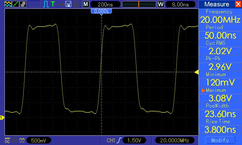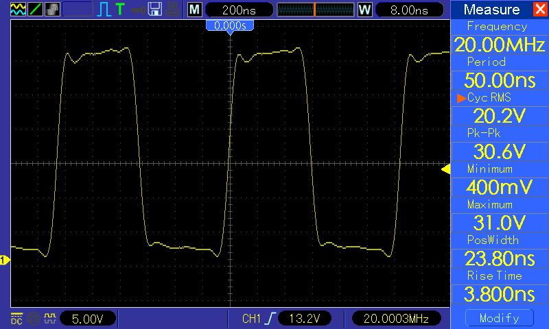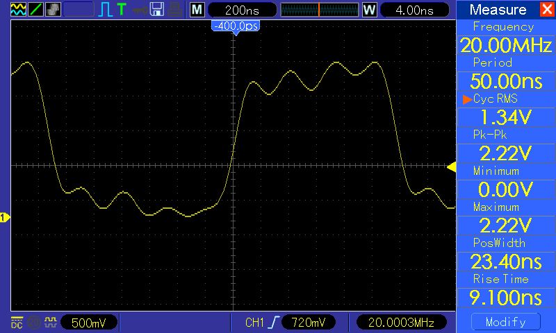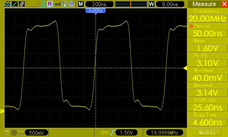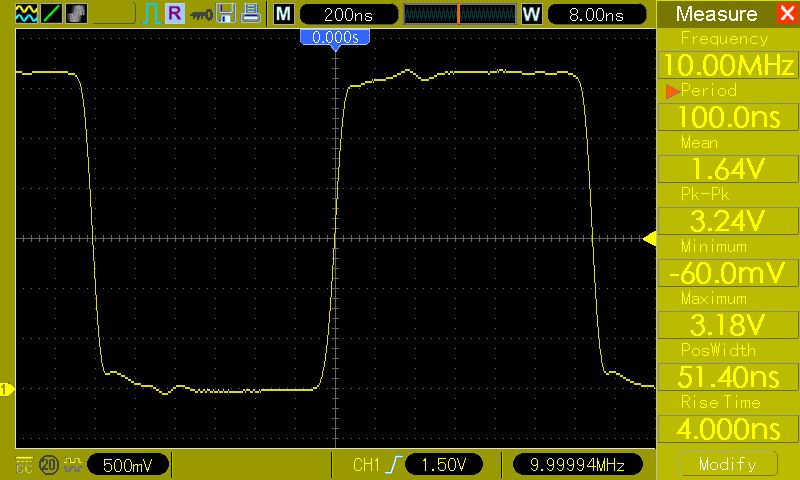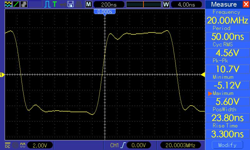 Eddy Current schrieb: > PM5193 Du sagst? > Das Gerät unterstützt maximal 20Vpp. Dein Screenshot zeigt 30Vpp. ich denke einfach falsche einstellung für probe x, auf den Tek bildern steht auch x10 > > Mein Gerät hat eine Anstiegszeit von ca. 11ns. Deines ca. 4ns. > trick 23, benutze pulse und schon kannst du 50MHz mit ~4ns rise time