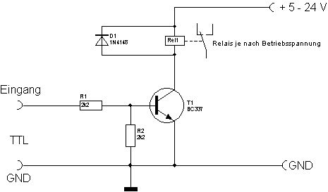 Hallo Zusammen, ich hoffe ich darf hier um Hilfe bitten? Leider bin ich technisch gesehen eher etwas unbedarft. Ich bekomme Dinge nach Anleitung oder Zeichnung hin, aber danach hört es bei mir leider auf. Ich bitte um Hilfe bei folgendem Problem: Es geht darum das Analogsignal einer Lambda Breitbandanzeige zu nutzen um ein Relais zu schalten. Der Kontroller der Anzeige gibt ein frei verwendbares Analogsinal von 0-5 Volt heraus. Erst bei Lambda 1 wird eine Spannung von 2,5 Volt erreicht, die bis Lambda 1.5 auf 5 Volt steigt. Vor Lambda 1 ist die Spannung kleiner 2,5 Volt und fällt bis Lambda 0,5 auf 0 Volt herab. Die Spannung steigt also von 0,5 bis 1,5 Lambda linear von 0 auf 5 Volt an. Ich habe gedacht, es wäre eine einfsche Lösung ein Relais mit einer Treiberschaltung anzusteuern. Aber ich finde einfach keine Schaltung für ein Eingangssignal 2,5 Volt. Die Treiberschaltung muss das Relais aber zwischen 2,5 bis 5,0 Volt anziehen lassen. Unter 2,5 Volt darf das Relais nicht angezogen werden. Mit anderen Worten ... ich suche eine Treiberschsltung die erst bei 2,5 Volt "aktiv" wird (und auch bis knapp über 5 Volt aktiv bleibt) und jede Eingangsspannung unter 2,5 Volt "ignoriert". Ich hoffe hier kann mir Jemand weiterhelfen, wie ich zum Beispiel die hier angehängte Treiberschaltung modifizieren kann um eine Lösung zu erhalten? Die genannten Bauteile der hier angehängten Treiberschaltung sind folgende: R1 2,2 kOhm R2 2,2 kOhm D1 1N4148 T1 BC 337 Rel1 (+12V) Quelle: http://www.elektronik-kompendium.de/sites/slt/1201131.htm Ich würde mich über jede Hilfe sehr freuen. Mit freundlichen Grüßen Dan