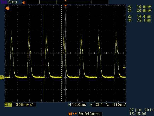 Andreas B. schrieb: > Da sieht man gut, dass der Entlade-weg für die 1,2V besser liegt als bei > der 2,5V. Sitzen die beiden Eingangskondensatoren tatsächlich so direkt unter dem IC? Denn der Ladestrom für die Spule muß ja aus denen kommen. Andreas B. schrieb: > Oder gibt es noch andere Maßnahmen, die ich vorerst treffen könnte? Probier mal einen 10u-Kerko am Eingangspin mit möglichst direkter Masseverbindung. Du hast mit der hohen Schaltreglerfrequenz eine nicht ganz einfache Aufgabe. Immerhin lösen sich solche Frequenzen mitunter sogar vom Kabel ab... ;-)