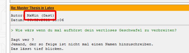 > Jemand, der so feige ist nicht mal einen Namen hinzuschreiben.