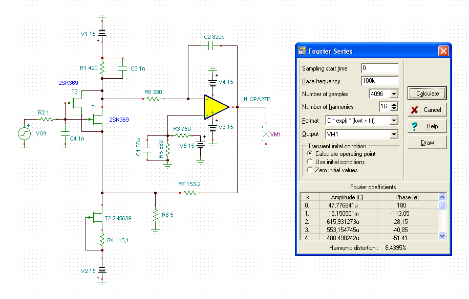 Ich gebe hier mal meine SIMU-Schaltung an. Sie läuft in TINA-TI. Das Spice Model für den 2SK369 habe ich von hier: http://www.diyaudio.com/forums/parts/26525-2sk369-spice.html Das Spice Model für den 2N5639 habe ich von der Website von Onsemi. Der OPamp ist ein OPA627. Aber es geht auch ein ganz normaler OPA27. Man steuere den Eingang mal mit einem Rechteck an und verändere dabei C2...