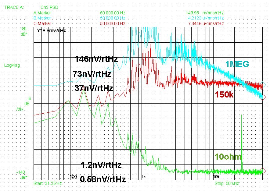 Ganz gleichmäßig?? In welchem Bereich meinst du? siehe Fig. 35 Datenblatt input referenced voltage noise. Wo da wohl das Knie ist?