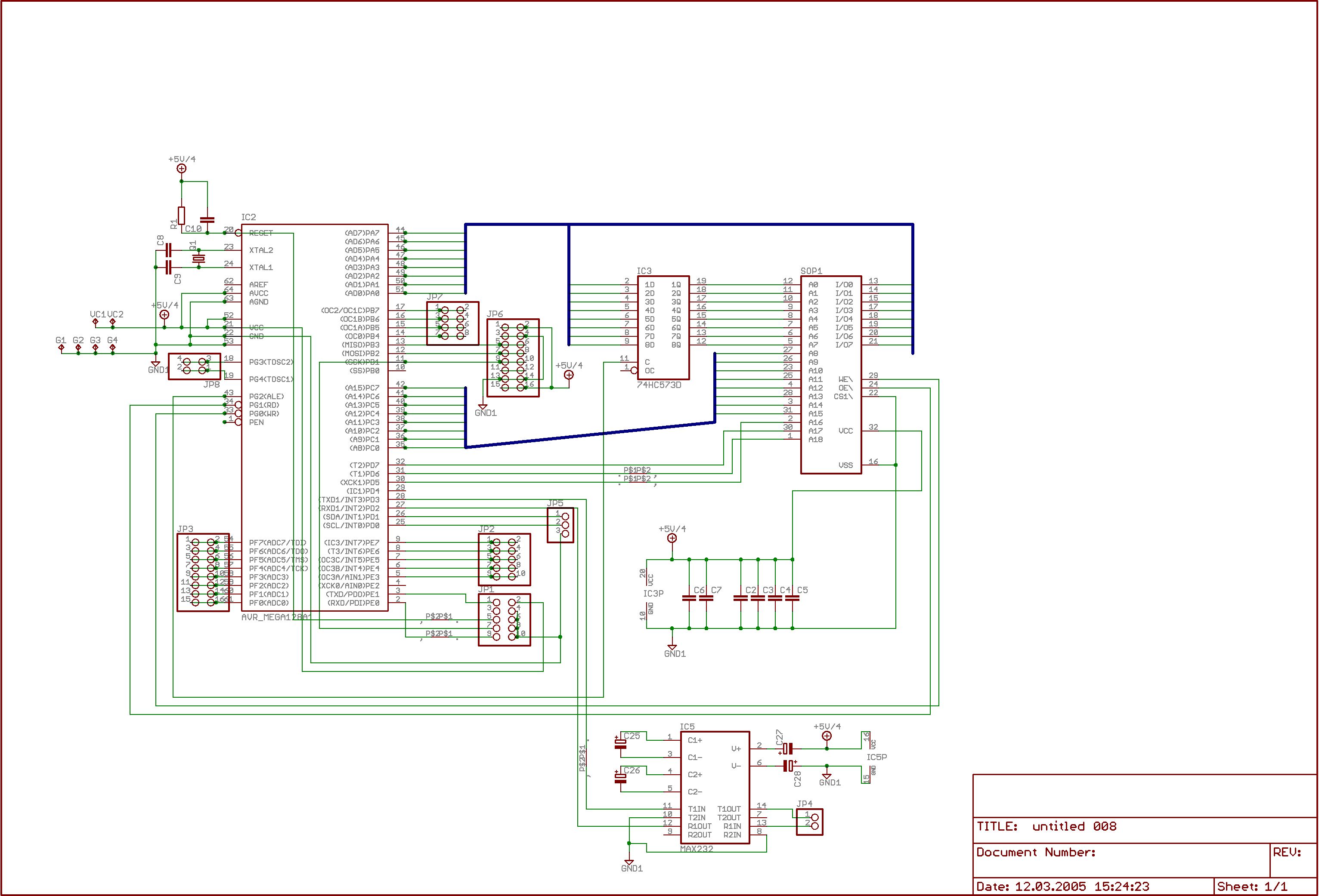"Welches IC aus der Reihe 74*573 kann ich als Vorschalt-IC für das Sram verwenden, wenn der Mega 128 mit 183,432 MHZ laufen soll?" Bei welcher Taktfrequenz? Die höchste, für die ein Mega128 offiziell spezifiziert ist, beträgt gerade mal 16 MHz. Da Du mit 5V Versorgungsspannung arbeitest, genügt ein stinknormaler LS-Typ, Du kannst aber auch HC oder HCT verwenden. Die sind auch bei "Übertaktungsversuchen" allesamt ausreichend schnell - kritischer ist da vielleicht eher die Geschwindigkeit Deines SRAMs. Vielleicht seh' ich's ja nur so, aber: Man malt keine Leitungen durch ein IC, wie Du es mit dem Mega128 gemacht hast. Im übrigen ist Tobis Hinweis zu berücksichtigen, Gif oder Png. (@Tobi: Wieso eigentlich gibst Du png den Vorzug? Das leidige Unisys-Patent ist doch jetzt endgültig kein Thema mehr, und man darf gif völlig legal verwenden ...)