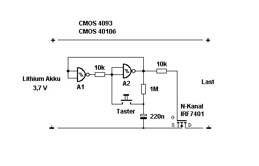A1 und A2 sind nur Namensgebungen von mir. Der 40106 ist ein 14-beiniger Käfer und z.B. hier erhältlich: http://www.reichelt.de/?;ACTION=3;LA=444;GROUP=A2211;GROUPID=2924;ARTICLE=12547; Die Anschlussbelegung liefert ein Datenblatt: http://www.national.com/ds/CD/CD40106BC.pdf In dem sieht man, dass an PIN14 die plus Versorgung dran kommt und an PIN7 GND.