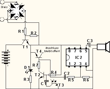 Hi Danke für die schnelle Antwort Ja ich habe es etwas eilig, ich bin schon am verzweifeln ob ich es bin oder etwas anderes. ic2 ist ein LM 386 http://www.gotthardbahn.ch/8_modellbahn/elektronik/8-Elektronik.htm Der den Schaltplan entworfen hat, mit dem habe ich auch schon gesprochen. Aber er sagt es mus gehen und bei ihm ging es auch. Ob es an den Transitor legen kann? So langsam gehen mir die Ideen aus