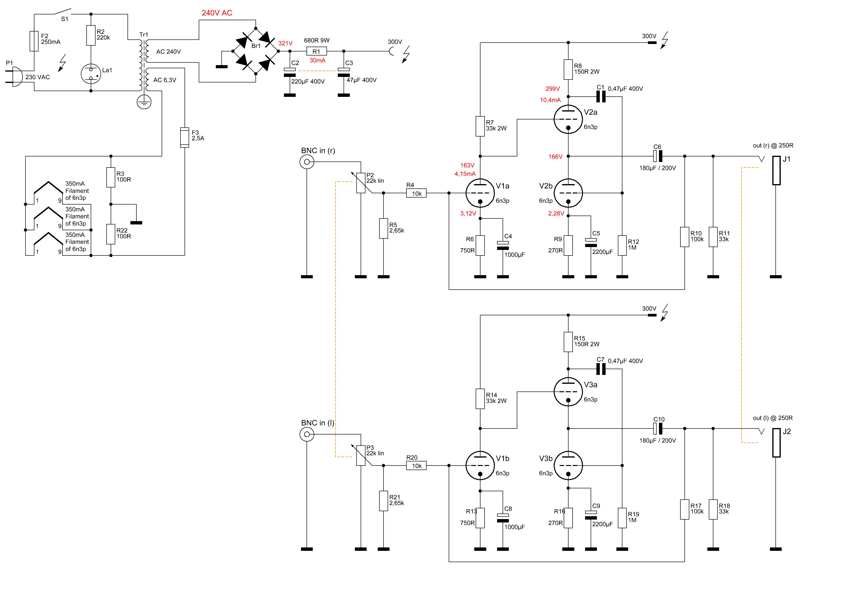 Heizspannungen der Röhren + für den Rest 1 x 240 V AC @ 100mA.