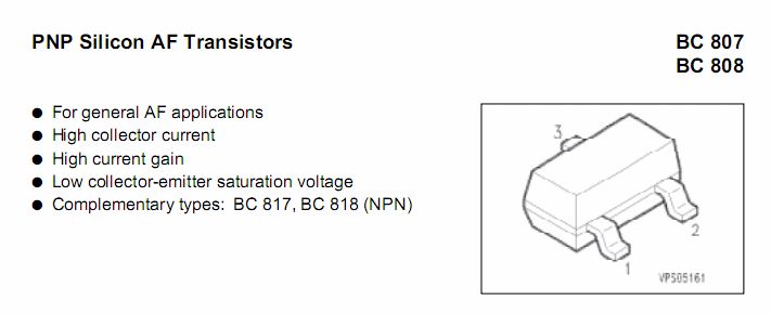 Hallo, steht doch im Anhang: BC 807 / BC 808 NF-Kleinleistungstransistor AF im Transistornamen != AF (Audio-Frequency) Gruß BerndB