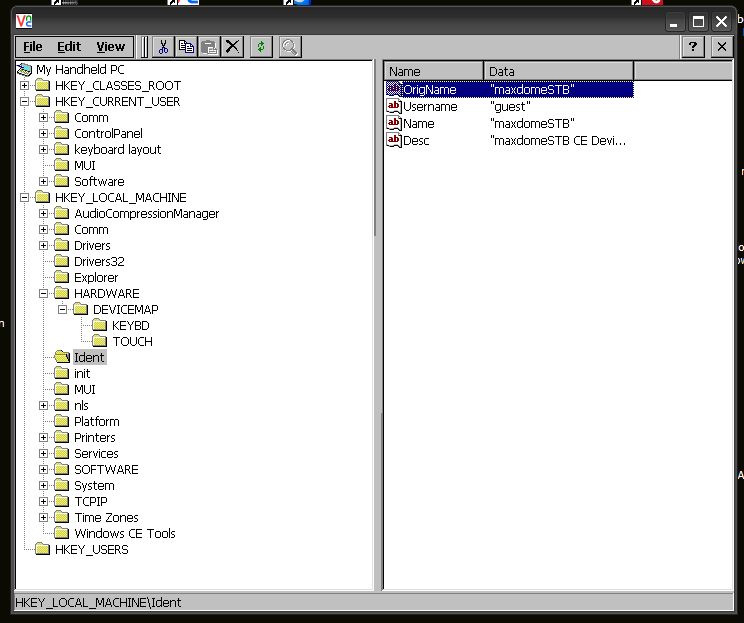 Hallo! Hab heute einen VNC Server fuer den MIPS gefunden. (http://www.rothberger.net/forum/showthread.php?threadid=1575) Habe nun einen Remote Zugang auf die Box. Hat jemand eine Ahnung wie ich die Registry von CE auslesen kann. Ich moechte erfahren welche Programme die Box versucht zu starten. Damit haette man einen Ansatzpung fuer eigene Software ohne den Flash veraender zu muessen. Thomas