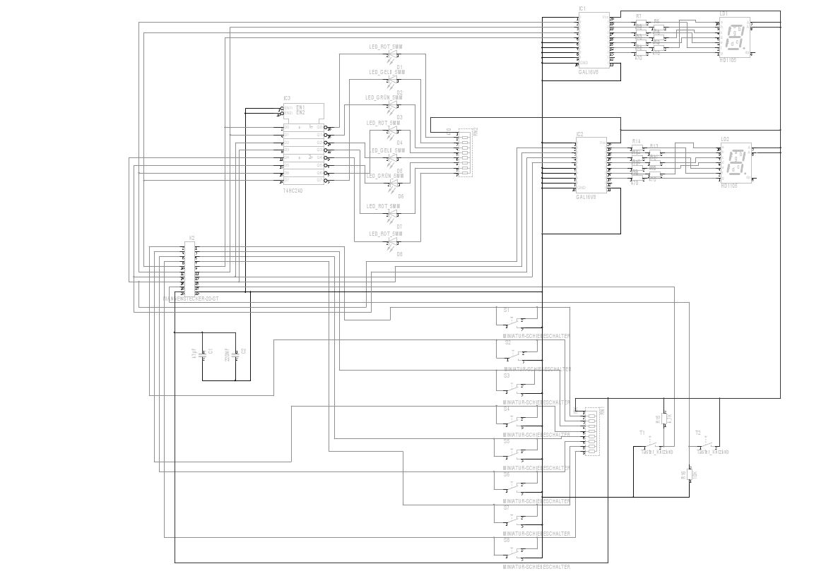 Hallo, ich habe ein Problem mit einem 74HC240, wenn ich nur 5V und Masse anschließe, leuchten die LEDs D1, D4, D5, D7 und D8(siehe Schaltung. An den Pins liegen immer so um die 0,14V. Durchgeprüft habe ich müßte stimmen. Kann ich den 74HC240 prüfen ob er nicht defekt ist. Hatte zuerst VCC und Masse vergessen, da haben die LEDs aber auch schon geleuchtet. Dr.Tod