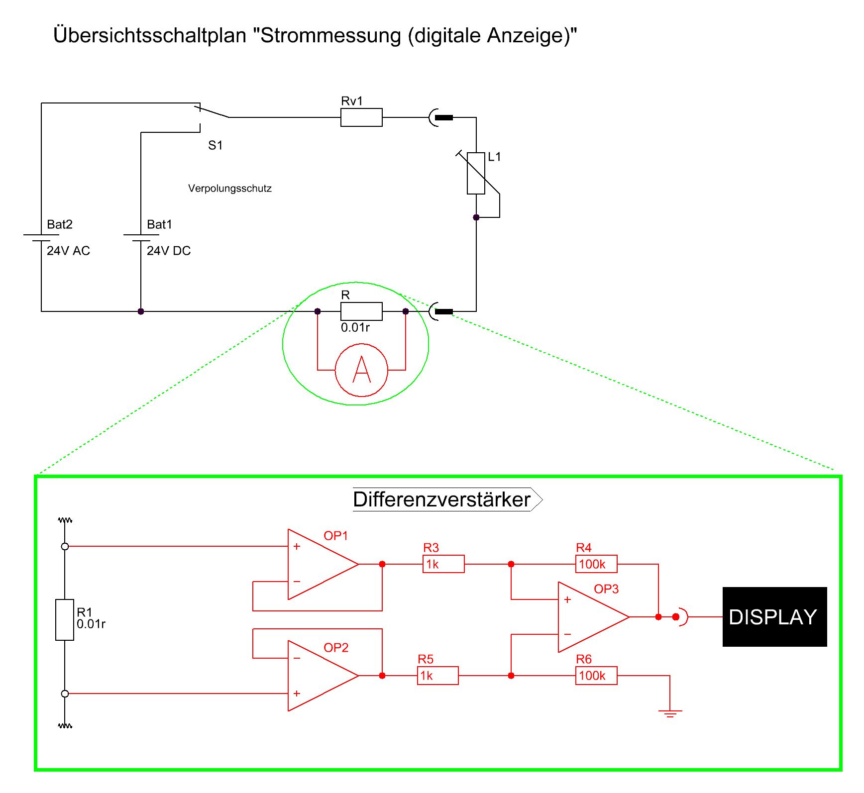 Guten morgen allerseitz :) ich bin neu hier zur zeit bin ich in der ausbildung als elektroniker. der beitrag hat mit µc-technik eig nix zu tun, man könnte das zwar alles mit nem µ-controllerboard machen aber das will ich nicht ;) und hoffe das ihr mir vllt trozdem weiterhelfen könnt. jetzt erst ma was ich vor habe: und zwar ich habe zwei mal das displays Trumeter DPM952-T: http://www.trumeter.com/Home.php?item=DPM%20952&lang=German wovon mir aber nur der adapter "DPMDCV"(<-sprich für gleichspannung) zur verfügung steht. http://www.produktinfo.conrad.com/datenblaetter/100000-124999/108316-da-01-de-Panelmeter_DPM952.pdf so ich will jetzt aber mit dem display keine spannung erfassen sondern den strom messen und zwar im DC wie auch im AC bereich. den ansatz für den DC-bereich habe ich mir schon mit nem shunt und nem differenzverstärker überlegt (s.Abb. unterer teil) wobei ich mir halt noch nicht sicher bin welcher OP es zum schluss letztendlich sein wird oder ob das überhaut funktioniert so wie ich mir das vorstelle. so jetzt zu meinem problem wenn ich diese schaltung mit shunt und differenzverstärker im AC-bereich schlaten will wird das ja so ohne weiteres nicht funktionieren?!?! und da hänge ich iwie...ich hatte mir schon so am anfang überlegt, "hmm vllt einfach nen brückengleichrichter parallel zum shunt bauen, und dann auf den differenzverstärker." aber da wäre der verlust ja viel zu hoch und ich würde im niedrigeren Spannungsberreich (0 - 2V) ja überhaupt kein ergebins erzielen. denn die B2U besteht ja wie wir alle wissen aus 4 dioden: 4*0,7 = 2,8V <-- verbraten also anfangs idee für die: \ \ ______\ [______] | | | Müll | (\______/) ich hoffe auf euren beistand und könnt mir iwie dabei weiterhelfen. Gruß Sleeper