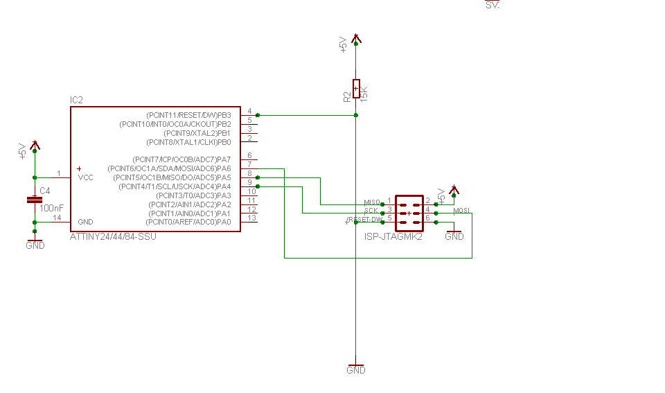 Paule, Autsch - /RESET gegen GND zu verbinden ist definitiv nicht richtig, dann läuft Dein armer uC ja gar nicht los... Falls es nach dieser Korrektur immer noch nicht funktioniert: 1. Spannungsversorgung nachmessen 2. RTFM und selbst die restlichen Pins korrigieren... gruss, tom.