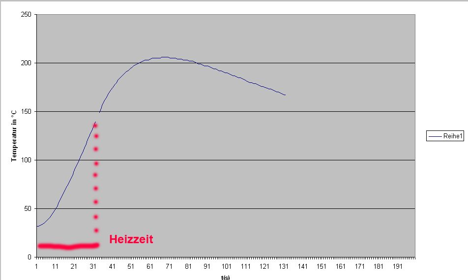 oha, da habe ich mich wohl mit der Temperatur etwas ungenau ausgedrückt. Aber eigentlich lässt sich dem Diagramm entnehmen, dass eine Temperatur von etwa 200°C (genau 201°C) erreicht werden soll. Die X-Achse des Diagramms ist zugegebenermaßen etwas irritierend, es handelt sich nämlich nicht um Sekunden sondern Zentelsekunden. Zur Ansteuerung: Die Heizwendel kann dank der Phasenanschnittsteuerung mit unterschiedlichen Heizwerten betrieben werden. In dem im Diagramm dargestellten Fall wurde es unter Vollast betrieben, bis zu dem Punkt, an dem die Wendel anfängt zu glühen. Dies entspricht etwa der gewünschten Temperatur von 210°C. Hätte ich also einen idealen Tempsensor würden mir am Ende der Heizphase bereits ca. 200°C ausgegeben werden! Nach dem Erreichen der Temperatur, ist es natürlich sinnvoll, die Heizleistung zu reduzieren. Bei dem Drahtsensor handelt es sich übrigens nicht einfach um zwei unterschiedliche Drähte, sondern einem speziellen Temperaturkabel, aus einem Labor. Die enthaltenden Litzen werden abisoliert und miteinander verdrillt (auf etwa 1cm Länge). Der Rest des Kabels kann als Stromleiter benutzt werden und wird normalerweise mit der Auswertelektronik verbunden. Da ich leider nicht im Besitz einer solchen Elektronik bin, habe ich mir gedacht, dass ein Nachbau nicht schwierig sein dürfte. Datenblätter des Sensors liegen vor. Dank der Suchfunktion im Forum bin ich auf einen speziellen OP für solche Themoelemente gestoßen, dem LT 1006 CN8. Dieser müsste sich doch für meinen Fall eigenen, oder? Gruß Julius