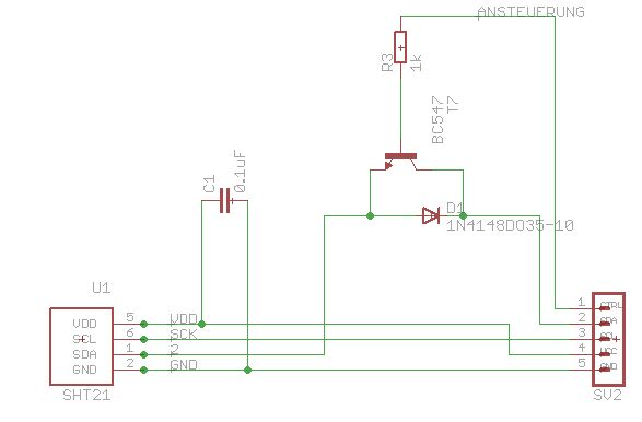 Sozusagen so wie jetzt im Anhang. Und dann macht es acuh nichts das mein Atmega mit 5V betrieben wird und die SHT21 mit 3,3V da sie ja alle nichts raussenden über ihre Pins sondern nur den Stromfluss aktivieren indem sie Eingang sind oder sperren indem sie Ausgang sind. Sprich kein Pegelwandler. Ich dachte halt bisher immer sozusagen, dass das TWI des Atemgas dann seine eigene Stromvesorgung bekommt... Und wie wähle ich dann die Widerstände und den Kondensator ich hätte jetzt 5kOhm und 100nF genommen.