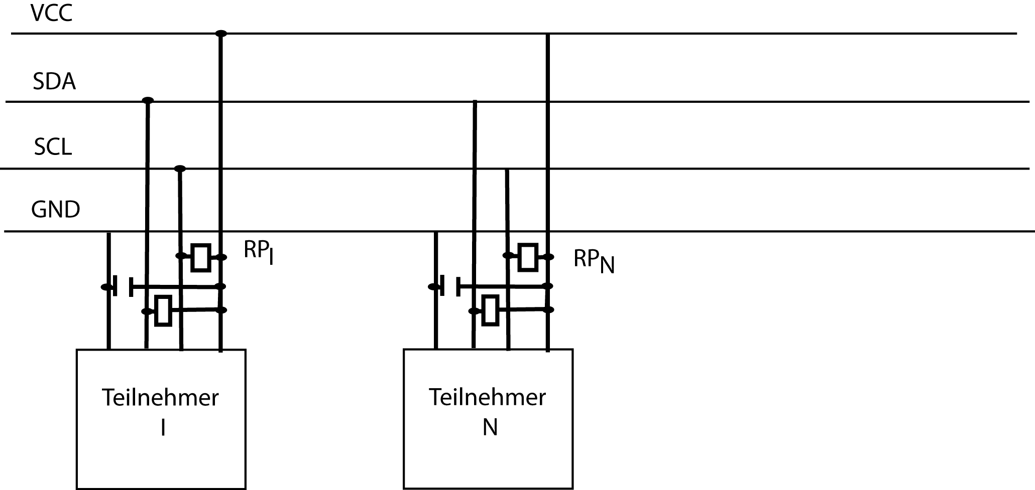 Ok damit hätte sich ja alles erledigt. Dann hat das ganze Spannungsproblem eigentlich nie existiert. Eine andere Frage noch: In den Anleitungen zu I2C sind die zwei PullUps immer auf der Hauptleitung gezeichnet. Jetzt ist es aber so, dass verschiedene Bausteine in ihren Datenblättern verschiedene PullUps angegeben haben. Also gehe ich mal davon aus, es macht nichts wenn ich sozusagen mehrere PullUps habe. Sprich je Verbraucher zwei Widerstände und einen Kondensator. Oder ist das dann ungünstig, weil z.B. durch mehrere Kondensatoren auch mehr durchfließen kann.