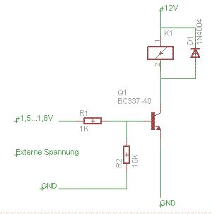Rainer S. schrieb: > benutzt man Transistoren um Relais durchschalten. Aber ganz sicher nicht in einer so sinnfreien Beschaltung! Was soll die Trennung der GND-Leitung über den 10k-Widerstand?