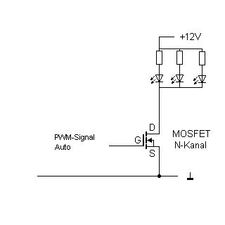 Hallo. Ich brauche eine Schaltung fürs Auto um ein PWM-Signal zu verstärken. Im Auto habe wird meine Instrumentenbeleuchtung über ein +12V PWM-Signal gedimmt. Da ich aber mehrere LED`s noch anschließen möchte und die Boardelektronik nicht überlasten will, benötige ich eine Verstärkerschaltung. Ich habe da an einem BUZ71A gedacht. der kann ja bis 13A. Kann mir da einer Helfen? So in der Art wie im Anhang. Gruß Spooon
