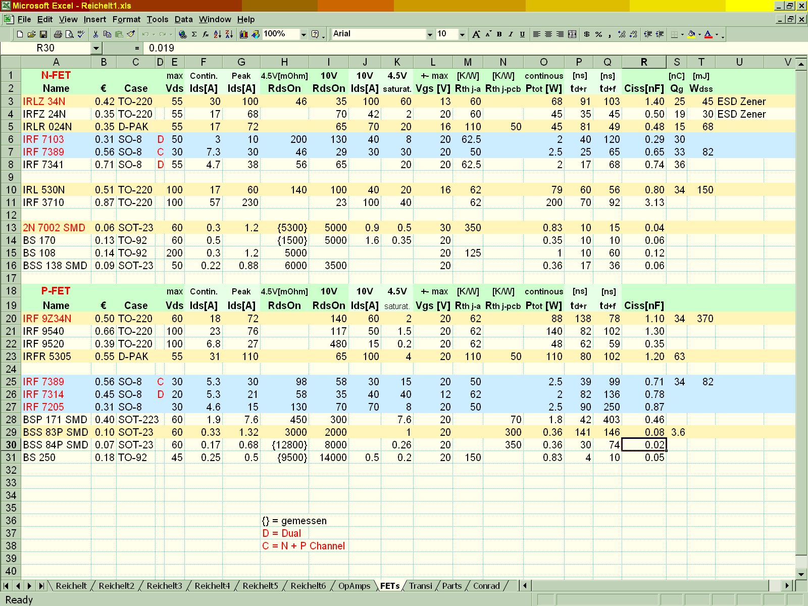 IRL3803 ist doch'n N-Fet. Nix mit V+ schalten. (Obige Liste ist natürlich nur eine kleine Auswahl der wichtigsten/günstigsten Typen...)