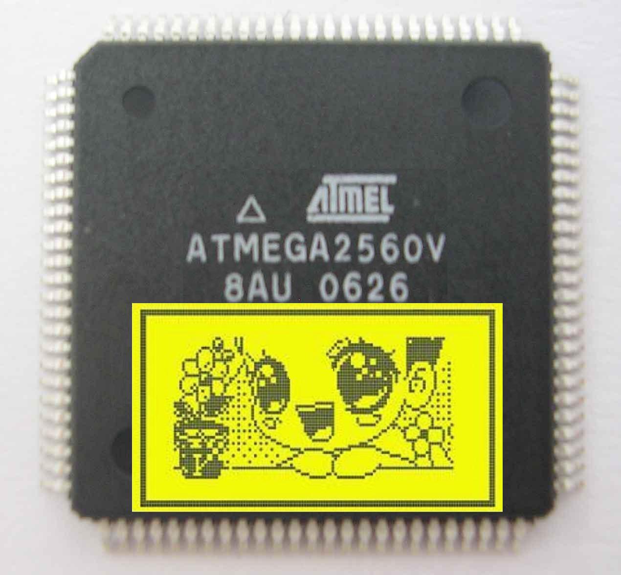 Wie Du auf dem dritten Bild siehst, gibt es von Microchip schon ewige Zeiten µCs mit Vollfarben-Grafik-Display: http://de.wikipedia.org/wiki/PICmicro Atmel hängt da wohl hinterher.