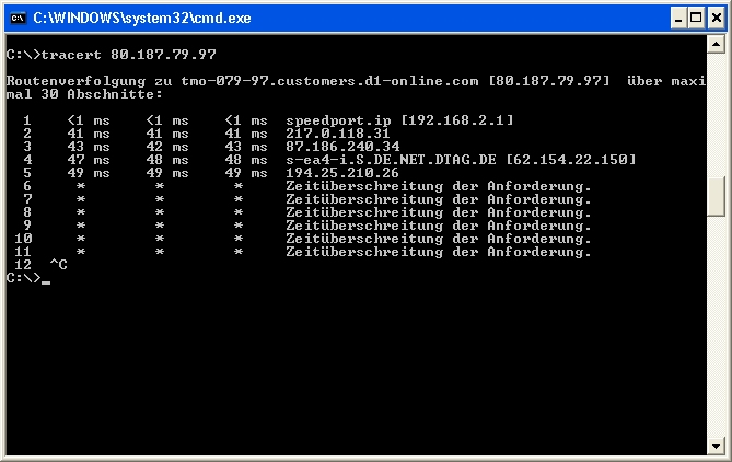 Ergebnis "tracert" siehe Anhang, mir sagt es nicht viel... Grüße k. ritter