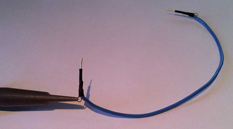 Ich würde gerne mal wissen, wie ihr mit dem Oszi (oder auch Multimer) geschickt auf dem Breadboard messt? Ich verwende meist so ein Kabel wie auf dem Bild was ich an die Messspitze hängt und das andere Ende dann auf dem Board einstecke. Ist meiner Meinung nach aber gefährlich weil ja hinten noch etwas unisoliert. Man könnte natürlich jedes mal versuchen die Messspitze direkt an ein Bauteil zu heften, aber das klappt nicht immer und meistens hängt es dann auch irgendwie im Weg rum. Ich bin mal gespannt auf eure Vorgehensweise Tobias