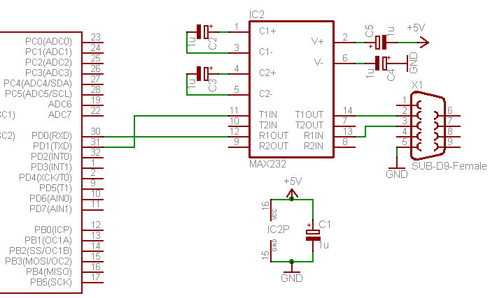 Morgen Zusammen. Hab mir eine Schaltung aufgebaut bei der ich nur mit T1OUT und R1IN an den D SUB gehe. Hab dann aber ein Schaltplan gefunden wo noch zusätzlich R2IN und T2OUT mit angeklemmt sind. Benutze ein 1zu1 Kabel für die Verbindung zum PC. Und habe noch Startschwirigkeiten mit dem Terminalprogramm in Bascom. Meine eigentliche Frage hätte ich Die beiden zusätzlichen Leitungen mit schalten müssen? Grüße Flo