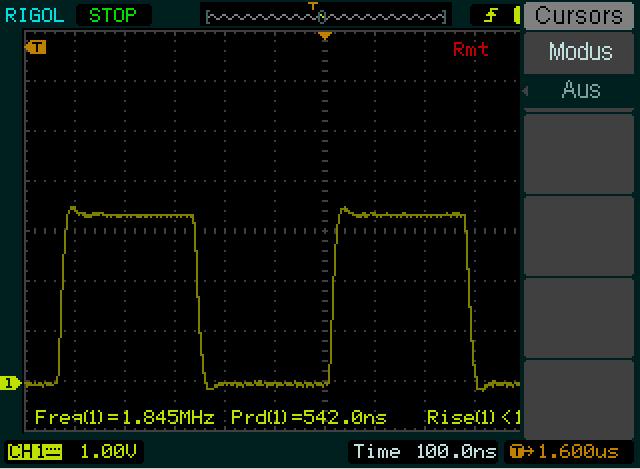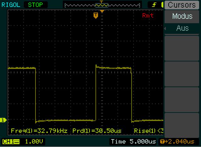 N'Abend Leute! Sagt mal, kann mir jemand verraten, wieso der Verlauf des Uhrenquarzes so unsymmetrisch ist? Also kein 50% Duty-Cycle? Ich habe den Quarz an einem MSP und lasse mir die Frequenz gepuffert auf einen Pin rausführen. Dieser schleust einfach die Frequenz nach außen, ohne irgendeine Berechnung. Ist das normal? Die Frequenz stimmt schon, aber halt der Duty-Cycle ist nicht symmetrisch...