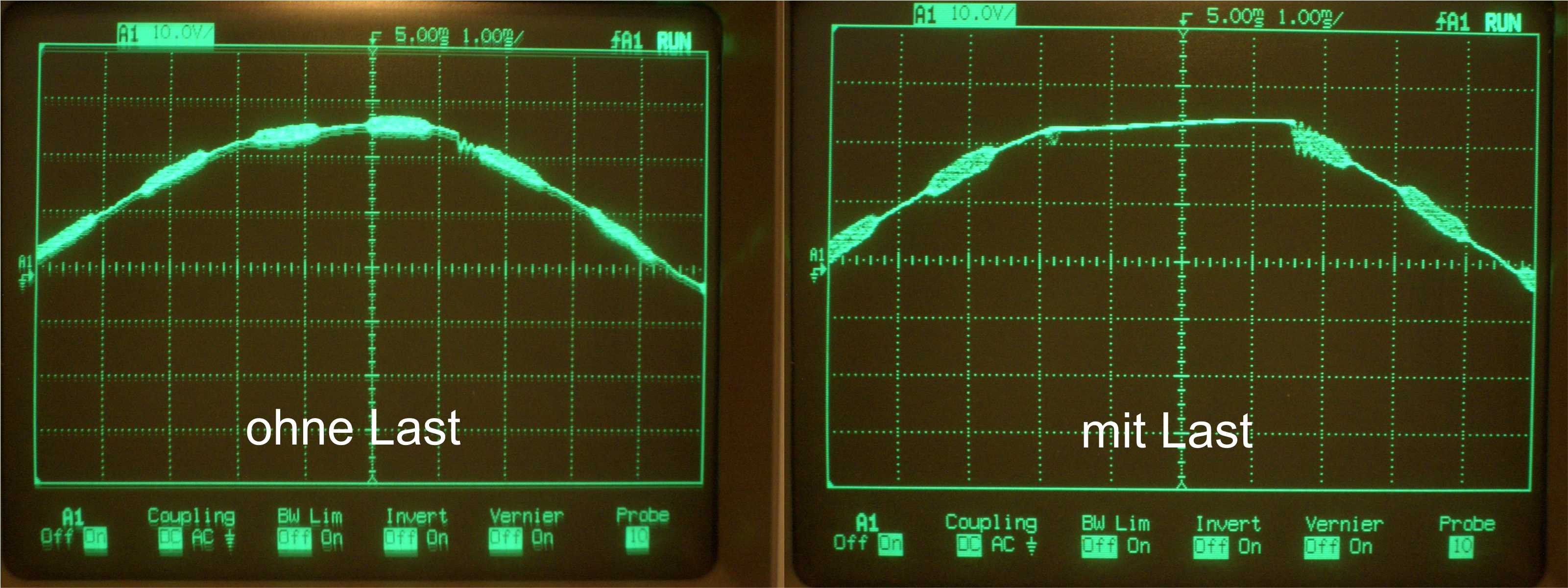 @Uwe Wenn ich jedoch die Verbindung zwischen den Glättungskondensatoren und dem nachfolgenden Spannungsregler öffne, so daß kein Strom gezogen wird, minimiert sich dieser Effekt gegen null. Kann man dem Entgegenwirken? Oder hilft da nur, die Übertragung im diesem Moment zu vermeiden ?