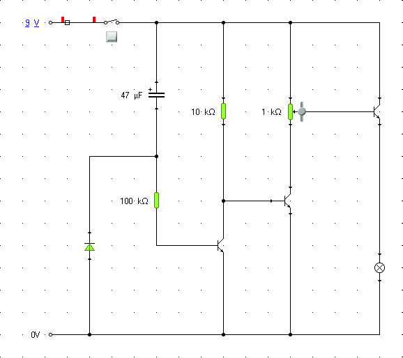 Hallo, @ heinzhorst (Gast): Bitte poste doch mal dein Projekt, ich wollte nur bemerken, dass es analog für den TE wahrscheinlich einfacher ist. Ich wollte deine Lösung mit µC nicht schlecht machen. Ich hab mal schnell eine einfache Schaltung gezeichnet. Versorgungsspannung ist hier 9V, weil das Simulationsprogramm nur 9V Glühlampen (entspricht Lüfter) im Angebot hat. Sollte aber bei 12V genauso gehen. Im Lastkreis mit dem Lüfter liegt ein als Emitterfolger geschalteter NPN (z.B. BD135), der als Impedanzwandler arbeitet. Die Basisspannung und damit die Spannung am Lüfter wird durch das Poti eingestellt. Nach dem Einschalten lädt sich der Kondensator mit dem Basisstrom aus dem linken Transistor (BC547) auf. Dieser wird damit durchgesteuert und zieht die Basis des mittleren Transistors (BC547) auf Masse, sodass dieser sperrt. An der Basis des rechten Transistors und damit am Lüfter liegt nun die volle Betriebsspannung. Der Lüfter hat nun ca. 10s Zeit zum Anlaufen, bis sich der Kondensator so weit aufgeladen hat, dass die Schwellspannung des linken Transistors unterschritten wird. Dann sperrt dieser und der mittlere Transistor steuert durch. Damit wird der untere Anschluss des Potis auf Masse gezogen und der Emitterfolger erhält an seiner Basis die eingestellte Spannung, wodurch der Lüfter seine Drehzahl auf den eingestellten Wert drosselt. Ach ja, der Lüfter sollte auch noch eine Freilaufdiode bekommen (1N4002). Der Stromverstärkungsfaktor des BD135 sollte bei den schätzungsweise 150mA ausreichen, ansonsten müsste man sich noch etwas passendes ausdenken. Ich habe jetzt auch nicht soo viel Erfahrung in Schaltungstechnik, falls es daher irgendwas an der Schaltung zu verbessern gibt oder man das vielleicht ganz anders macht, bitte ich um Kommentare seitens der Profis hier im Forum. Grüße Johannes