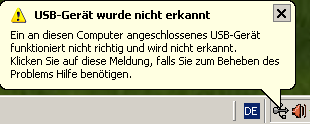 der usb host im PC merkt ueber den widerstand auf der Datenleitung das was angeschlossen wurde, bekommt aber keine Antw. von dem neue Geraet, und deswegen die Meldung, also irgendwas in der Hardware falsch oder der Tiny ist nicht programiert vlG &vy73! Charly