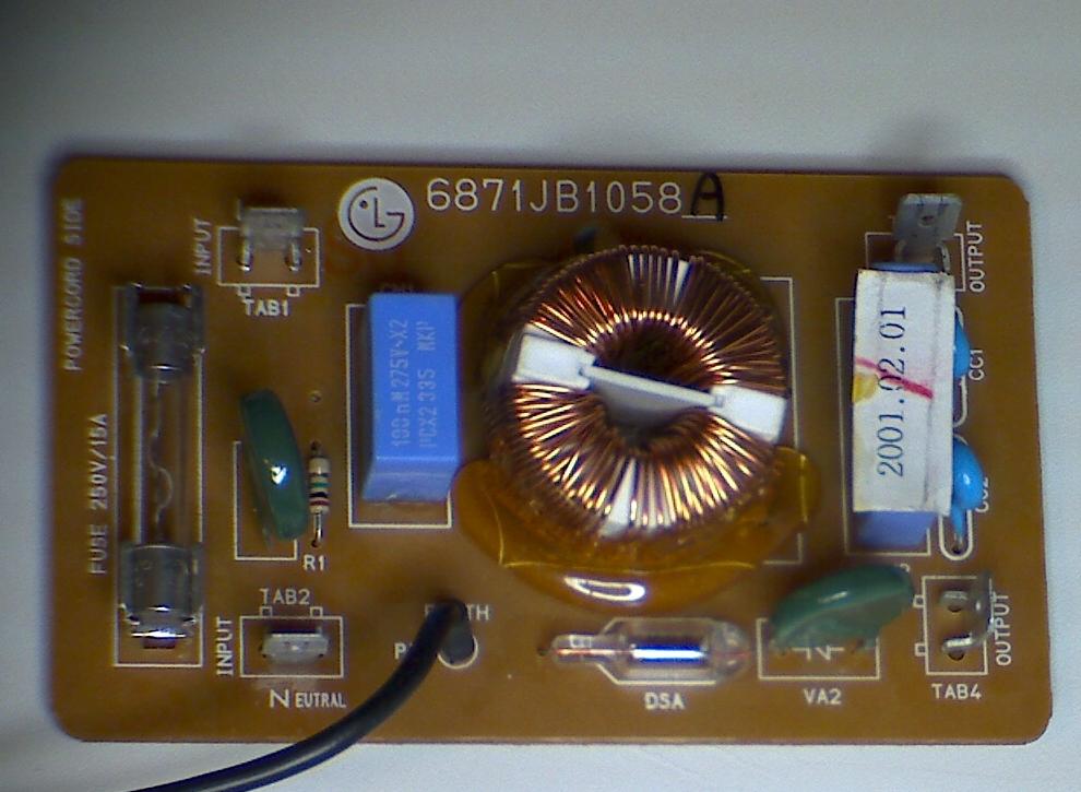 Guten Abbend zusammen, ich habe einen defekten Kühlschrank von LG. Der defekt äußert sich dadurch, dass vom Spannungseingang 230V~ keine Spannung am Ausgang ankommt (siehe Platine). Wenn ich die Flachstecker vom 230V~ Eingang direkt mit den Flachsteckern vom Ausgang verbinde, funktioniert der kühlschrank einwandfrei. Das ist natürlich keine Lösung. Kann mir jemand schreiben, was diese Platine für eine Funktion hat? Dient sie nur als Entstörfilter? Auch weiss ich nicht was das Bauteil DSA sein soll. Die Kondensatoren werde ich erneuern und dann mal schauen ob es wieder funktioniert. Nur die Funktion dieser Bauteilgruppe verstehe ich nicht. Kann mich jemand aufklären? Danke im Voraus. Gruß Peter