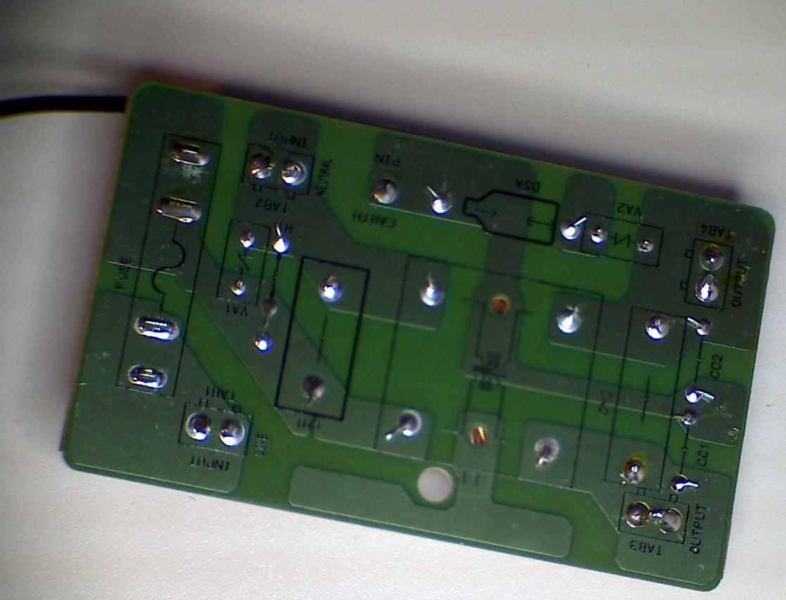 Das ist eine Platine für Entstörung. Zusätzlich ist auch die Überlastsicherung hier angebracht. Das Bauteil "DSA" kenne ich auch nicht. evtl. ist es eine Glimmlampe, um Spannungsspitzen aus dem Netz abzufangen. Ergo macht die Platine schon Sinn ;) Der Strom fließt über die Sicherung (FUSE) und die Drossel zum Ausgang. Ergo deutet der von dir beschriebene Fehler auf einen defekt in einem dieser Bauteile hin. Ist denn die Sicherung (FUSE) noch intakt (durchmessen mit Ohm-Meter ergibt 0 Ohm)?