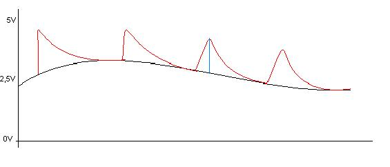 Hallo Matthias! Das mit dem Untergrundsignal ist leider nicht so leicht zu beschreiben. Wie schon beschrieben handelt es sich um das Signal eines Pulsoximeters. Das Untergrundsignal kommt im Wesentlichen durch minimales Verrutschen des Sensors am Finger, durch leichte Unterschiede im Anpressdruck des Sensors an den Finger etc. zustande, es ist also stochastischer Natur und damit nicht mathematisch beschreibbar. Bei langsam Verrutschen (was meist der Fall ist) ist der Frequenzbereich des Störsignals gut von dem des Nutzsignals getrennt. Das heißt mit einem Tiefpass sehr niedriger Grenzfrequenz kann ich dieses Driften ganz gut heraus extrahieren, aber wie schon gesagt dauert das dann immer eine Zeit lang, zb. beim Einschalten, wenn sich der Tiefpass erst von 0V auf die ca. 2,5V annähern muss. Danke für weitere Inputs Sebastian
