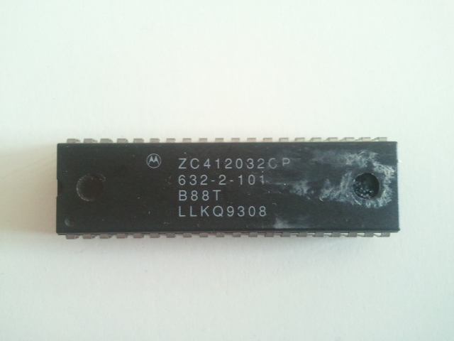 Microcontroller von Motorola, wohl ein 68HC05, mit fest programmierten Programm im ROM. Wegschmeissen.