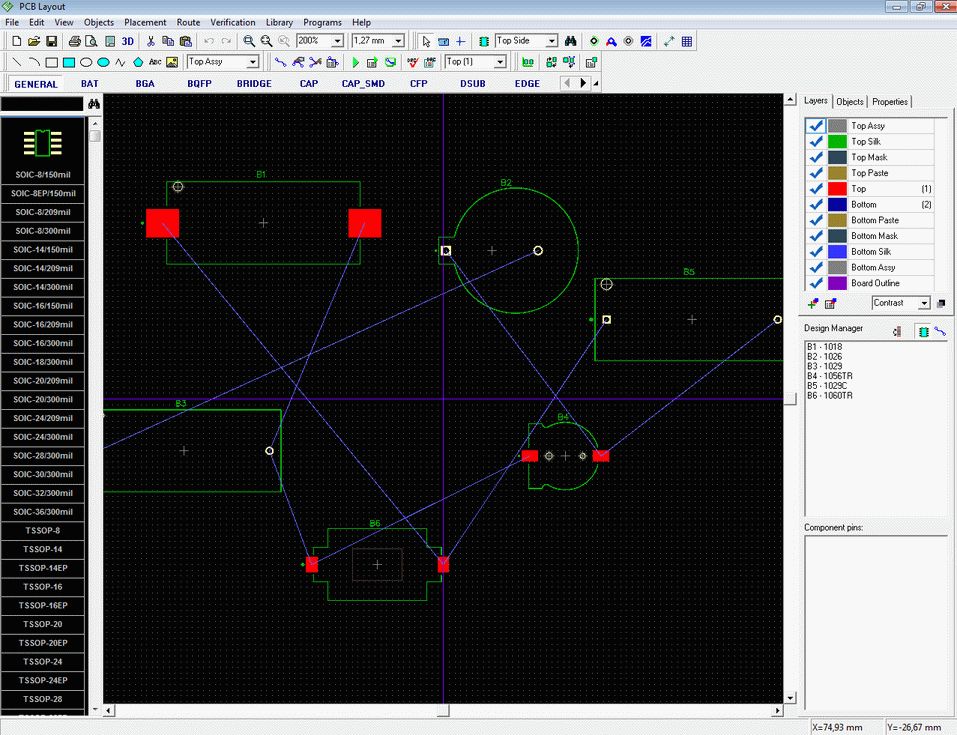 Außerdem besteht in Diptrace die Möglichkeit bestimmte (kritische) Bauteile vom Autoplacement auszunehmen bzw. diese vorher selber zu plazieren und anschließend den Autoplacer aufzurufen.