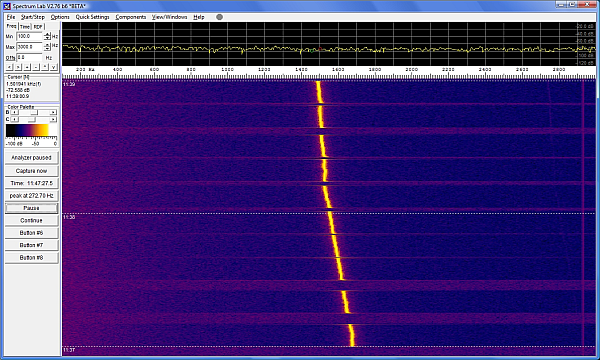signal wurde herunter gemischt, exakt 10 MHz entspricht 1500 Hz ( in
