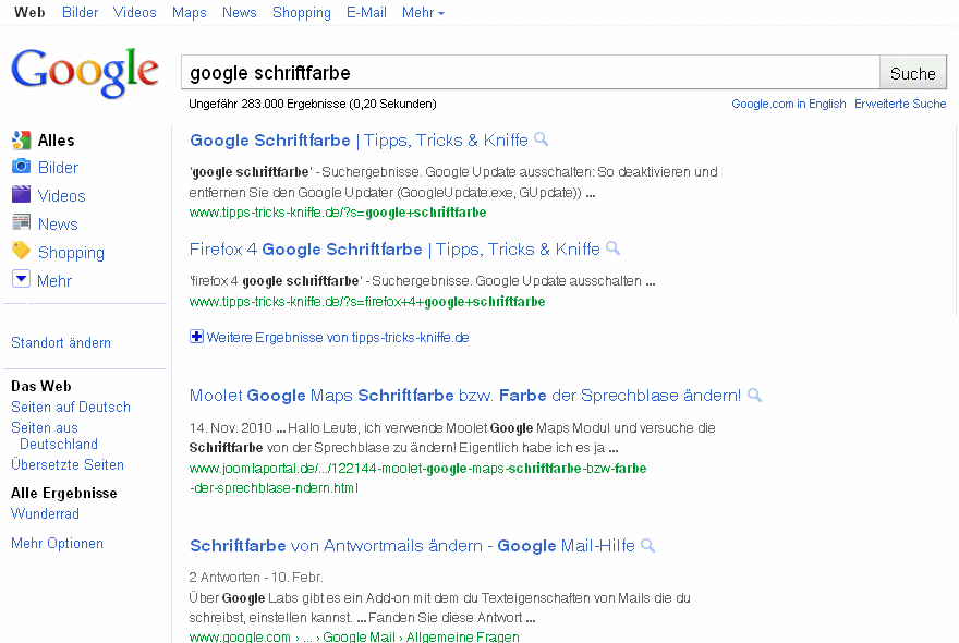Hallo, was ist den nun bei google los? das neue Design ist ja sowas von schlecht zu lesen :-( Das Blau in der Farbe der links wird heller und aus der schwarzen Schrift wird hellgrau, finde ich extrem schlecht zu lesen! Leider liefert google für meine Bedürfnisse immer noch die besten Suchergebnisse, ansonsten müsste man direkt zu bing wechseln #plääär#